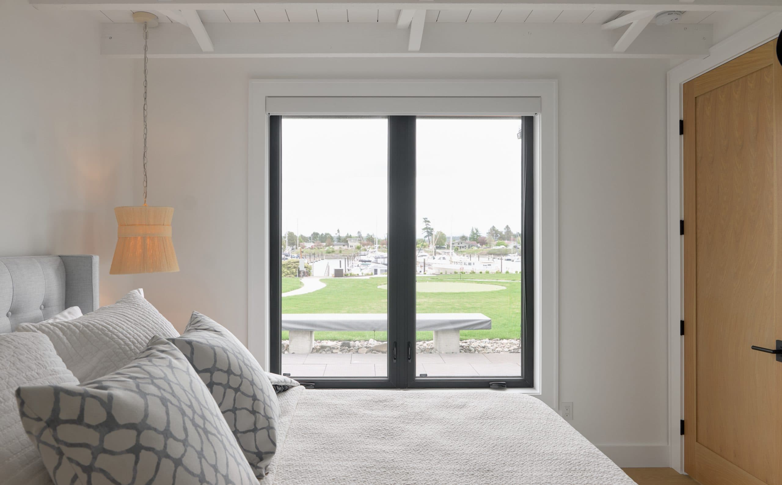 Large windows showcasing ocean view