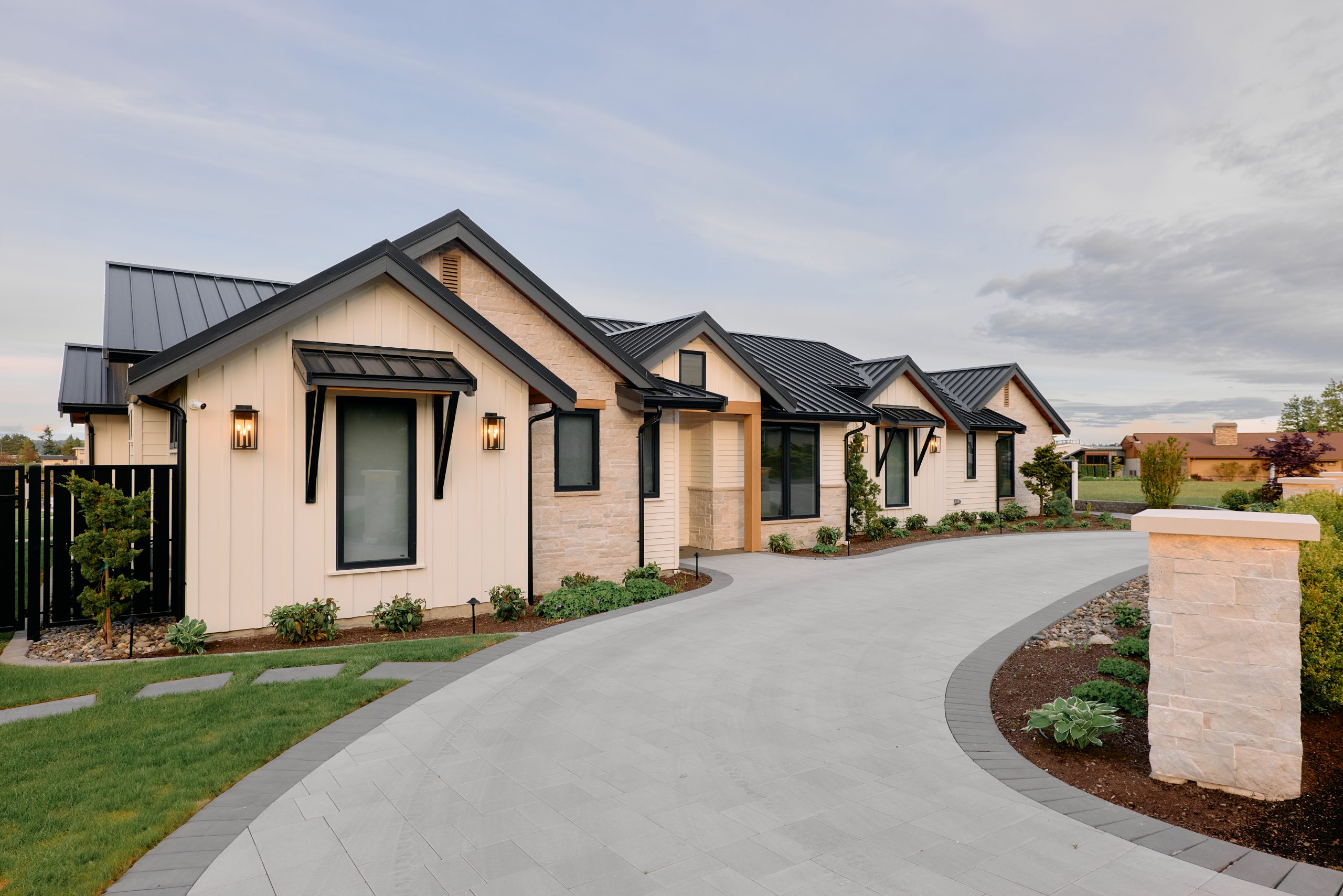 Picture a contemporary home on the Pacific Northwest coast, featuring large windows that showcase stunning ocean views. The exterior combines wood and stone for a natural look.