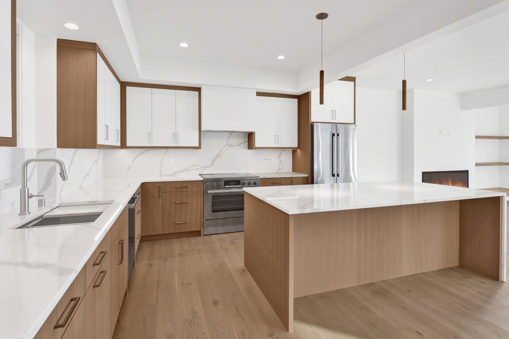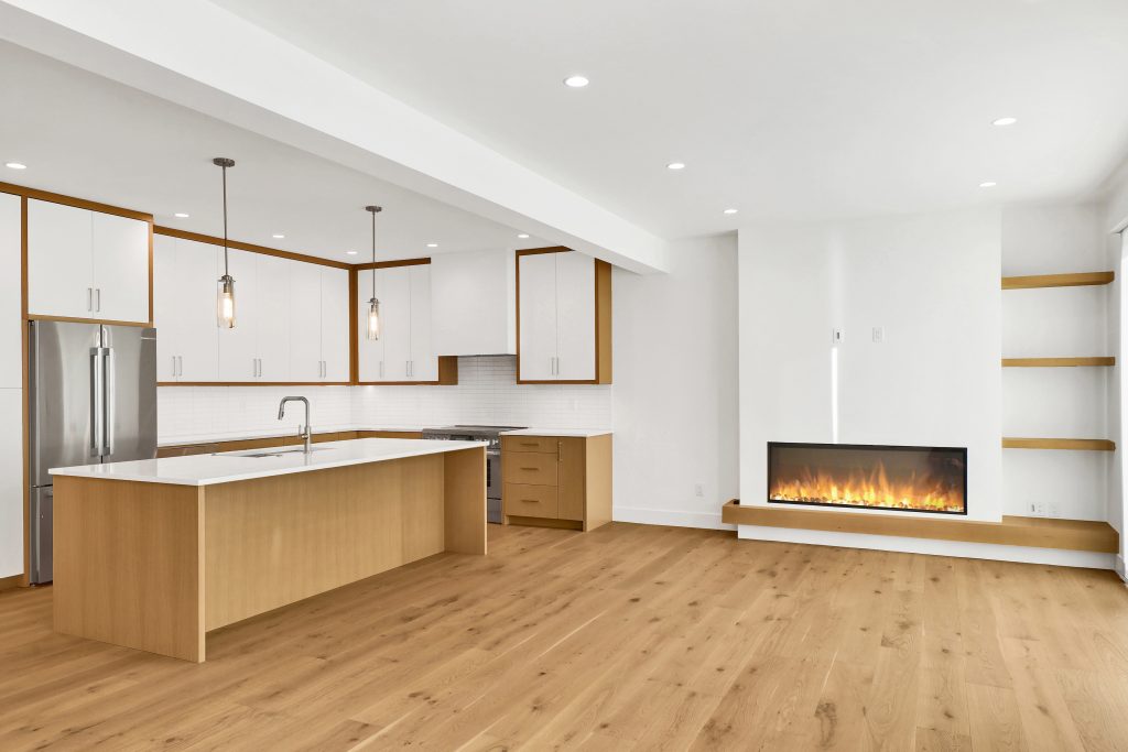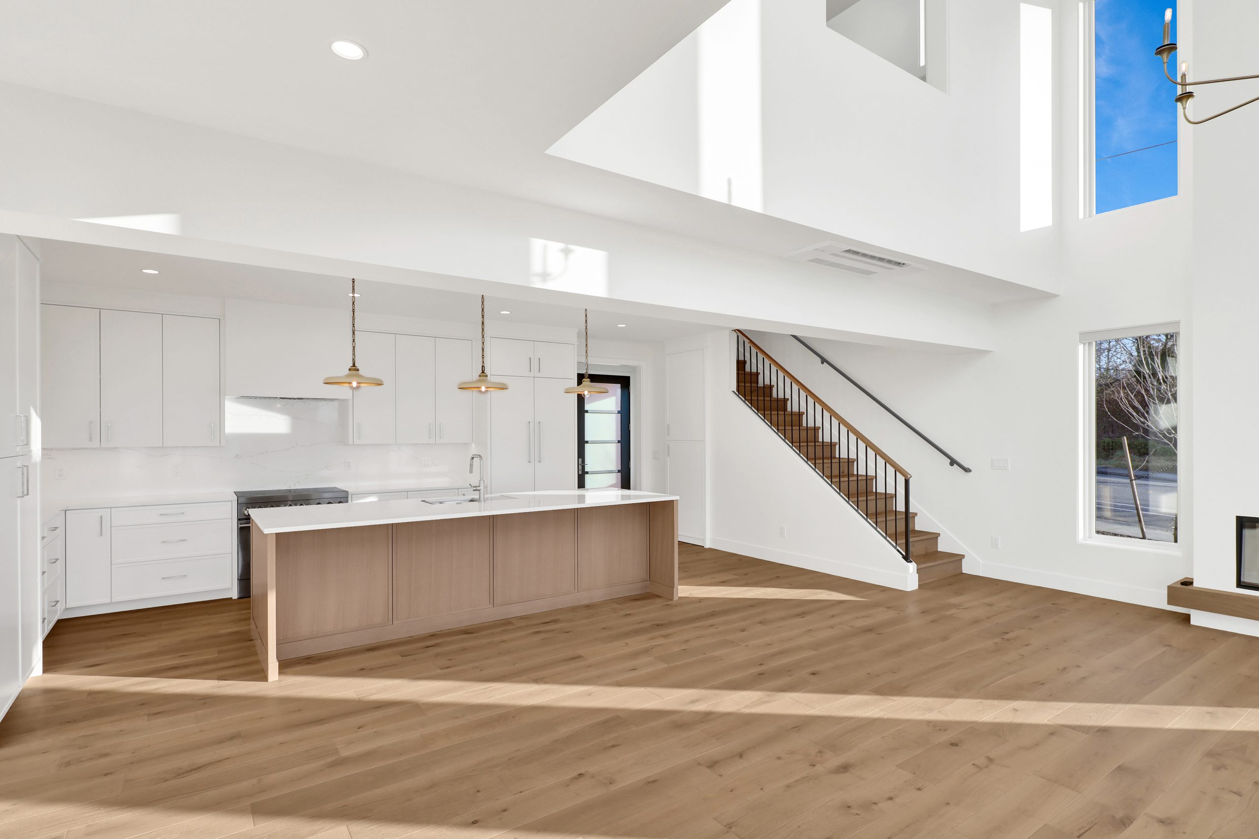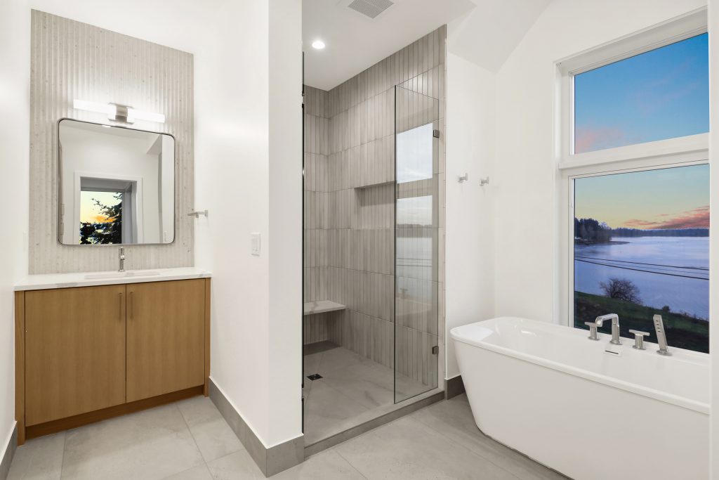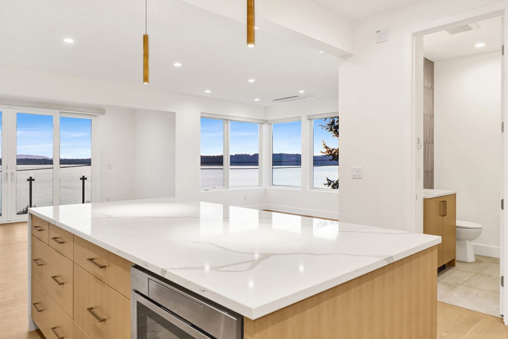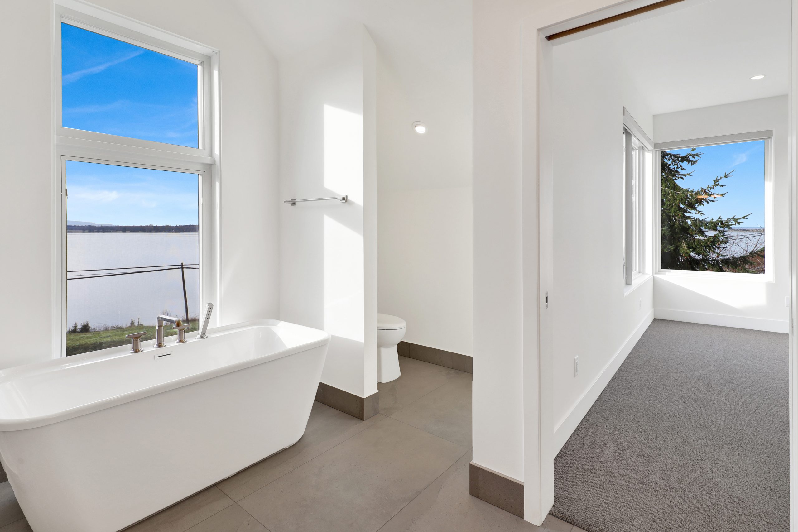 Salish Ridge Four is a modern Pacific Northwest fourplex that pairs clean gabled forms with a refined blend of wood-inspired siding, metal roofing, and crisp contemporary detailing. Set above the shoreline in Blaine, Washington, the three-story residences are thoughtfully shaped by the unique contours of the site, resulting in four distinct yet cohesive homes. Expansive windows throughout each unit frame sweeping water views and invite in soft coastal light, creating bright, airy interiors. Each residence features an attached garage and a vertically layered layout that balances openness with privacy. The design emphasizes simplicity, livability, and a strong connection to the surrounding landscape, offering modern comfort rooted in its coastal setting.