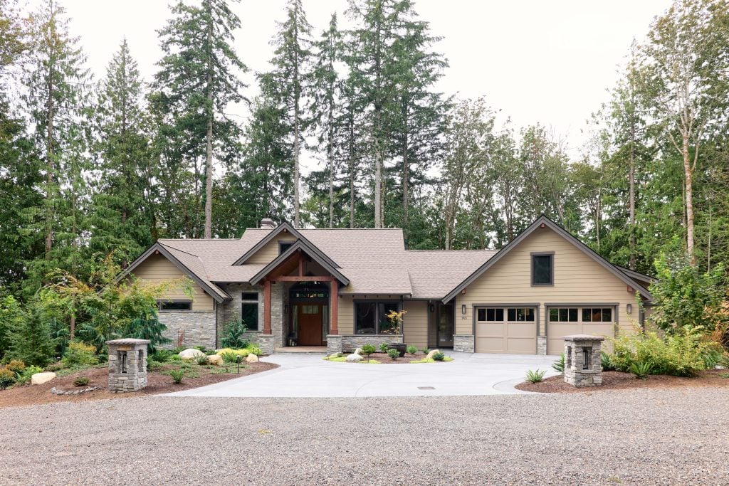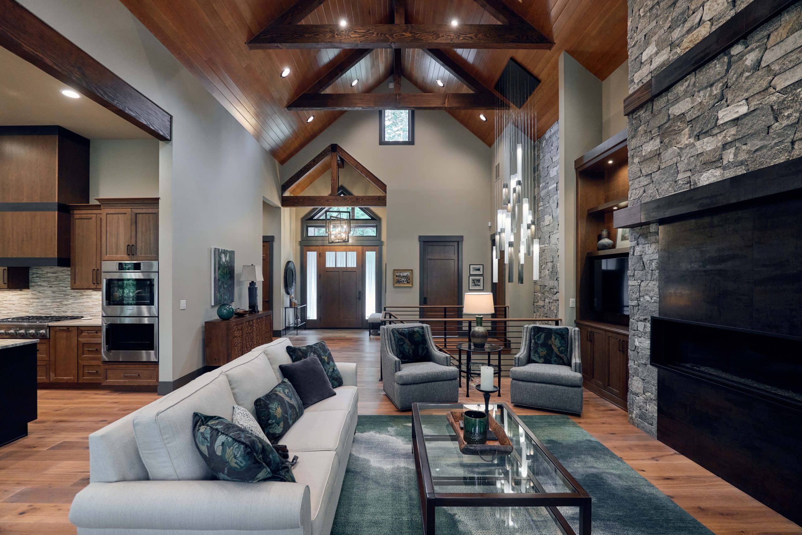 Stonepine Retreat blends Northwest warmth with refined lodge-style living. Tucked among towering evergreens, its stone accents, wood beams, and soaring ceilings create a sense of both permanence and peace. Natural textures continue inside, where a grand vaulted entry and rich finishes invite cozy gatherings and quiet moments alike. A serene escape that feels both grounded and elevated, Stonepine Retreat is where forest and home exist in perfect harmony.
